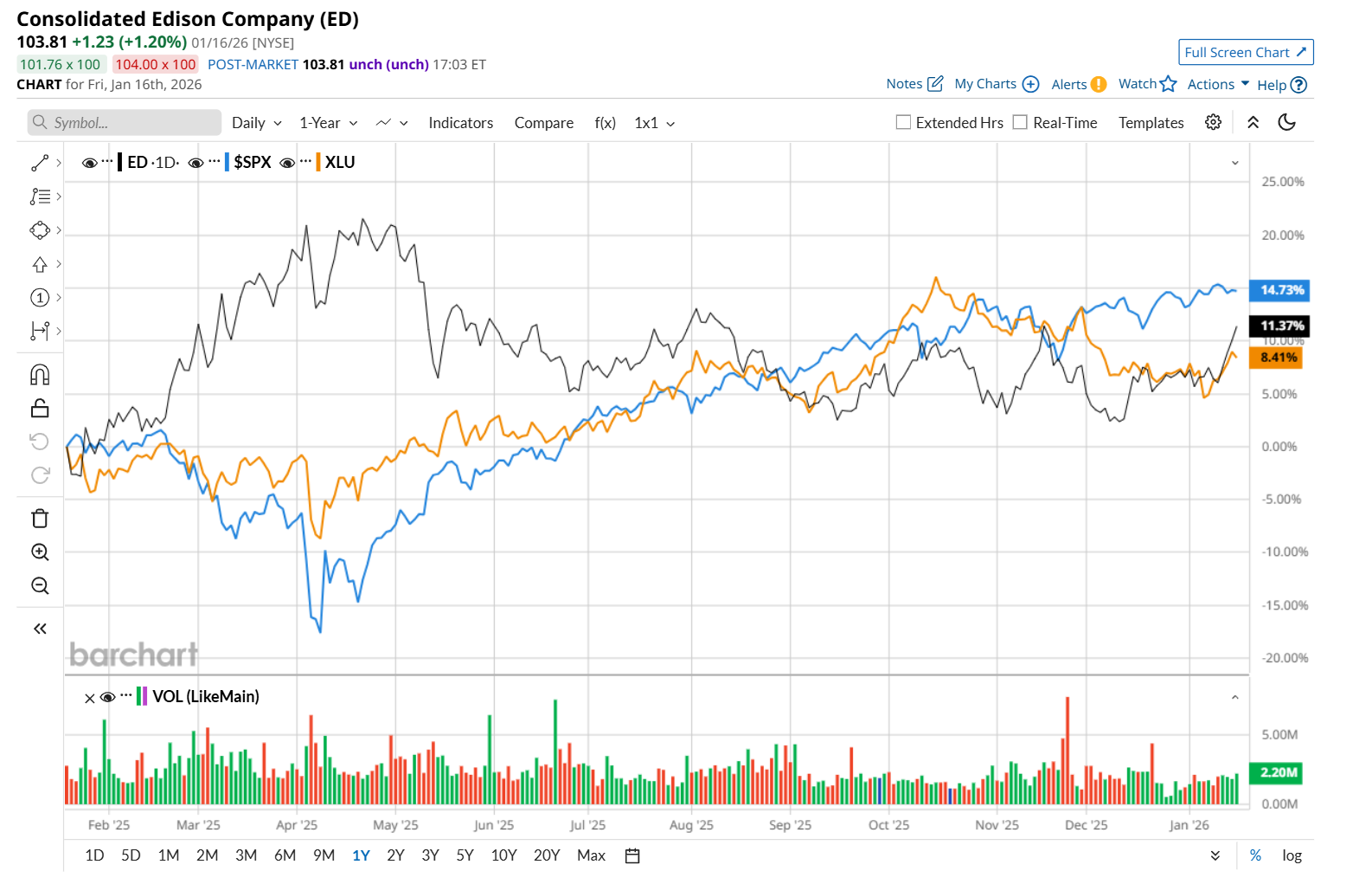 ED has surged 12.6% over the past 52 weeks, lagging behind the S&P 500 Index's ($SPX) 16.9% return over the same time frame. However, zooming in further, it has outpaced the State Street Utilities Select Sector SPDR ETF’s (XLU) 10.2% uptick over the same time period.